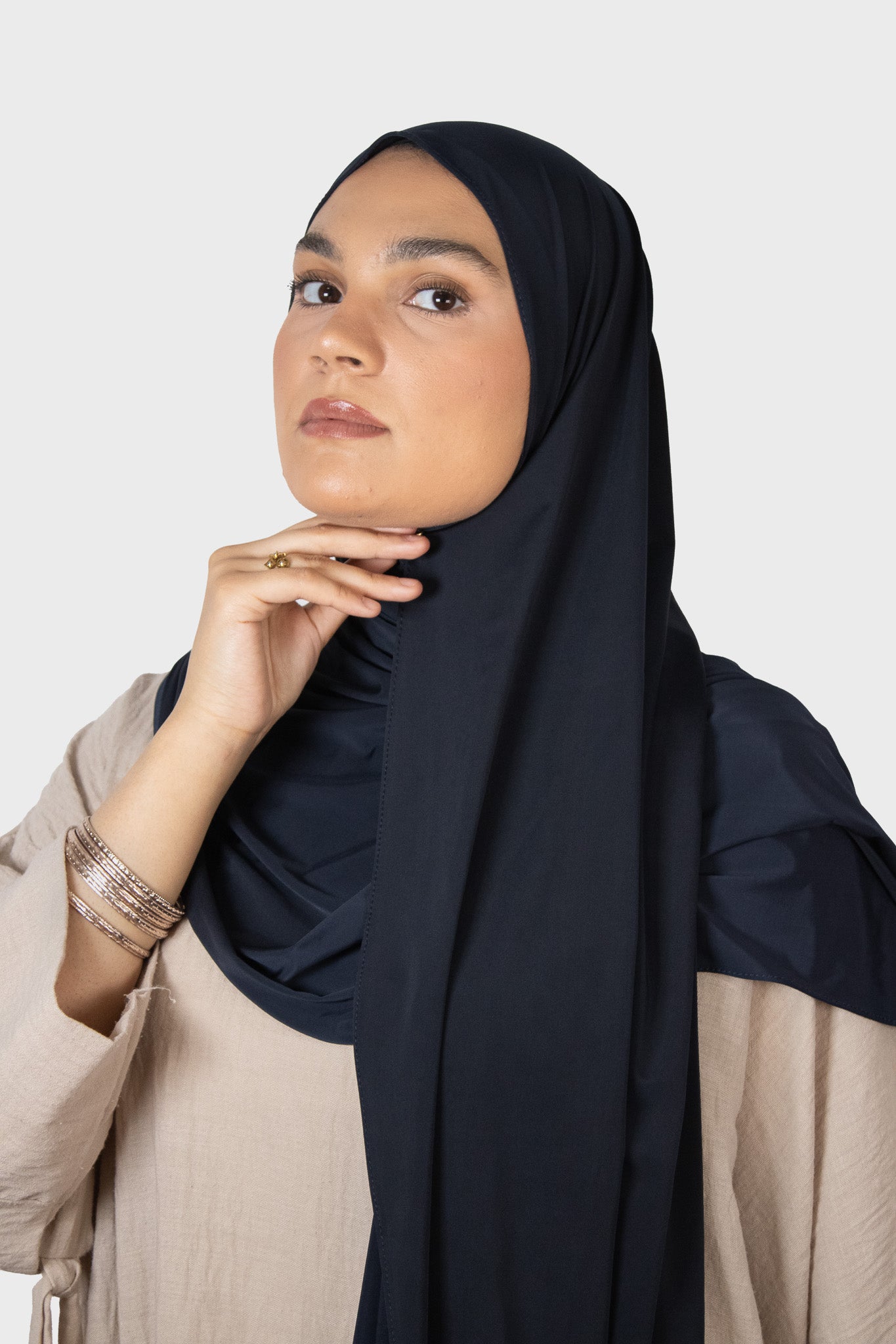 Le voile en jersey liquide se distingue par son tombé fluide et sa texture douce qui offre un confort optimal tout au long de la journée. Léger et respirant, ce tissu est parfait pour un port quotidien, apportant à la fois élégance et praticité. Sa matière permet une excellente tenue sans perdre en souplesse.