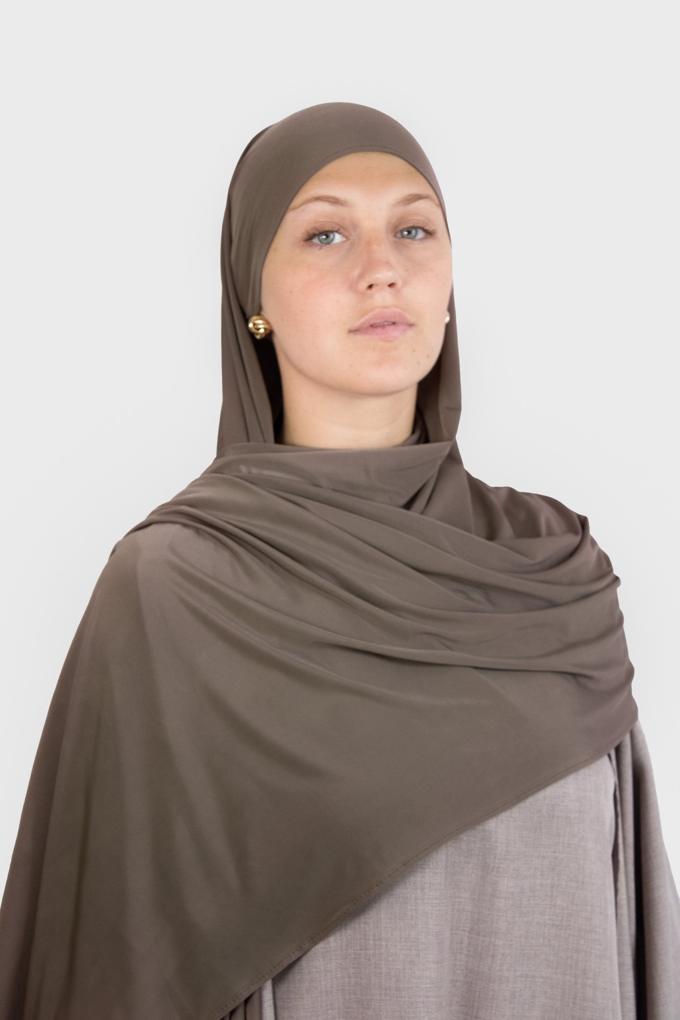 Le voile en jersey liquide se distingue par son tombé fluide et sa texture douce qui offre un confort optimal tout au long de la journée. Léger et respirant, ce tissu est parfait pour un port quotidien, apportant à la fois élégance et praticité. Sa matière permet une excellente tenue sans perdre en souplesse.