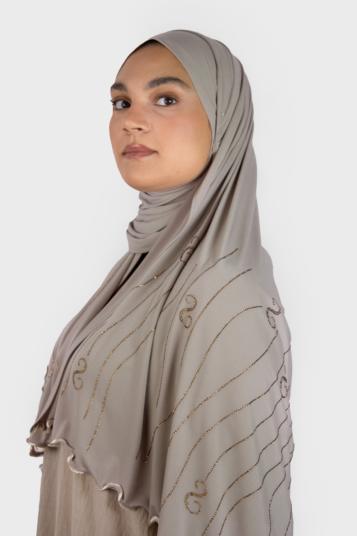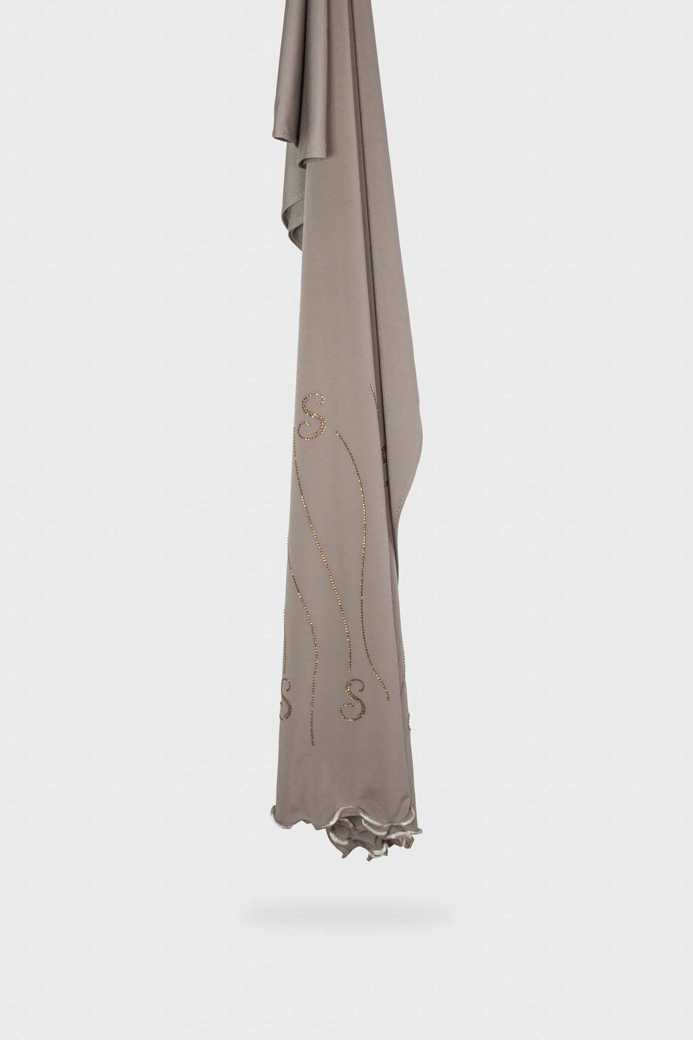 Le voile jersey premium avec strass allie élégance et originalité avec son tissu jersey premium doux et confortable. Son design unique se distingue par un grand « S » placé près de la finition, représentant la signature de Saphir Boutique. Le détail en zigzag apporte une touche d'originalité, tandis que les perles en forme de vagues viennent sublimer le voile. Léger et fluide, il offre un confort optimal tout en rehaussant votre tenue d’un détail chic et contemporain.