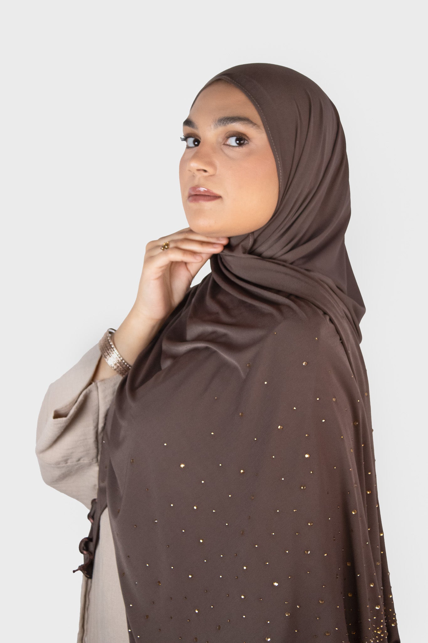 Le voile jersey premium avec perles allie confort et raffinement. Son tissu jersey premium doux et extensible assure une tenue agréable et légère. Le motif zigzag subtil apporte une touche graphique élégante, tandis que les perles délicates disposées en dégradé viennent sublimer le bas du voile avec finesse. Léger et fluide, ce voile est idéal pour celles qui recherchent une élégance quotidienne sans compromis sur le confort.
