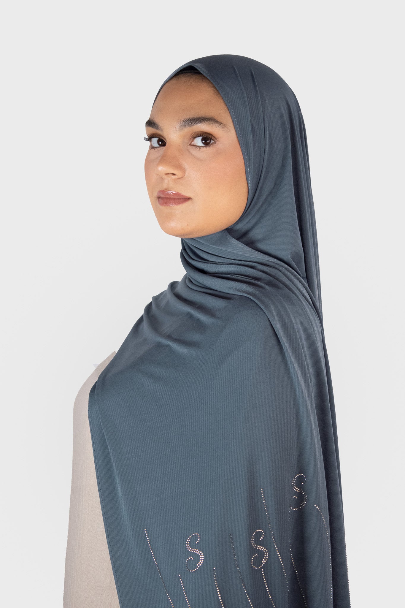 Le voile jersey premium avec strass allie élégance et originalité avec son tissu jersey premium doux et confortable. Son design unique se distingue par un grand « S » placé près de la finition, représentant la signature de Saphir Boutique. Le détail en zigzag apporte une touche d'originalité, tandis que les perles en forme de vagues viennent sublimer le voile. Léger et fluide, il offre un confort optimal tout en rehaussant votre tenue d’un détail chic et contemporain.