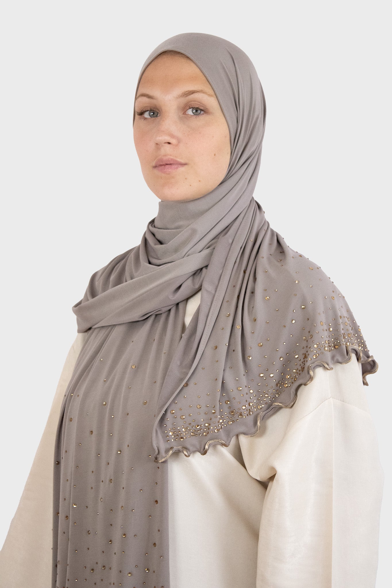 Le voile jersey premium avec perles allie confort et raffinement. Son tissu jersey premium doux et extensible assure une tenue agréable et légère. Le motif zigzag subtil apporte une touche graphique élégante, tandis que les perles délicates disposées en dégradé viennent sublimer le bas du voile avec finesse. Léger et fluide, ce voile est idéal pour celles qui recherchent une élégance quotidienne sans compromis sur le confort.
