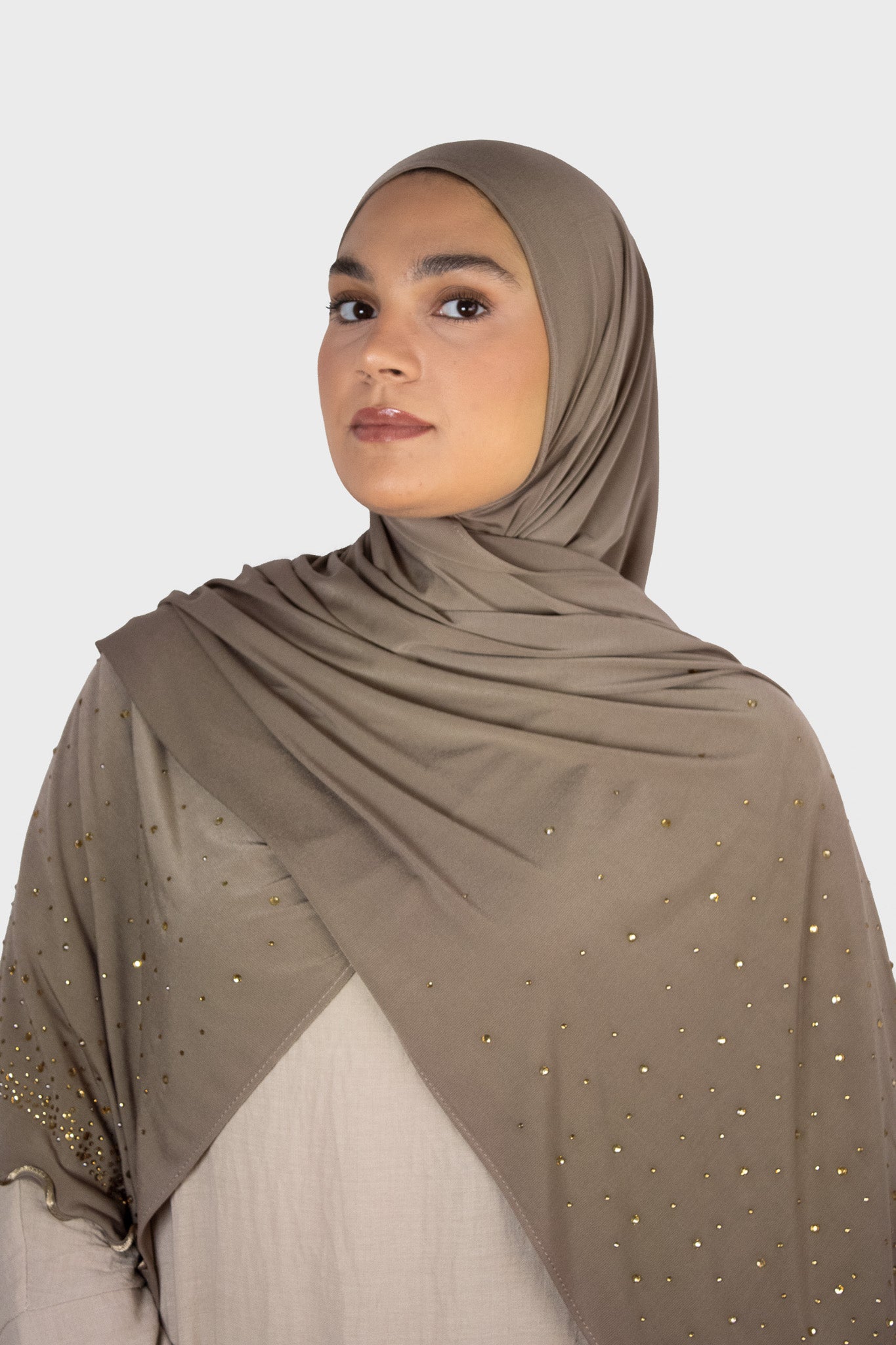 Le voile jersey premium avec perles allie confort et raffinement. Son tissu jersey premium doux et extensible assure une tenue agréable et légère. Le motif zigzag subtil apporte une touche graphique élégante, tandis que les perles délicates disposées en dégradé viennent sublimer le bas du voile avec finesse. Léger et fluide, ce voile est idéal pour celles qui recherchent une élégance quotidienne sans compromis sur le confort.