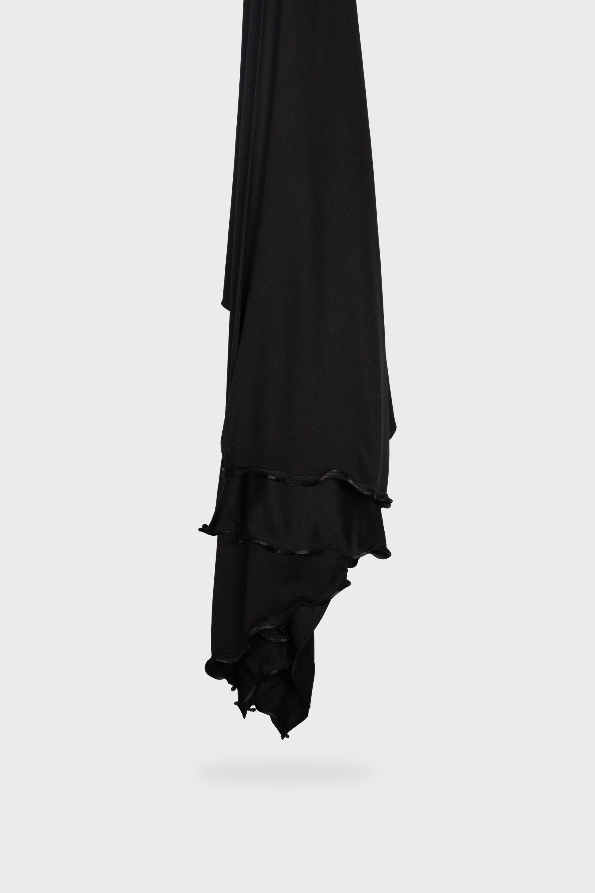 Le jersey coton avec zigzag (frisé) est une pièce unique et élégante. Ce tissu de haute qualité combine la douceur du jersey coton avec un design original en zigzags (frisé) en bas, ajoutant une touche de style et de modernité à votre tenue. Sa texture légère et fluide le rend confortable à porter, tandis que le détail des zigzags apporte une note d'originalité. Ce voile allie donc confort et élégance.