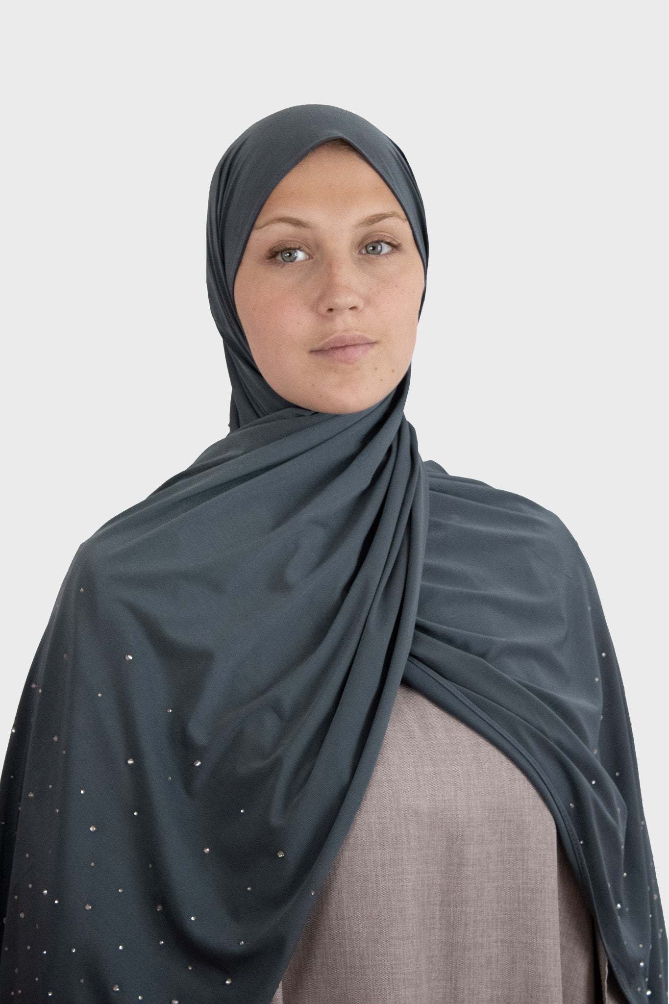 Le voile jersey premium avec perles allie confort et raffinement. Son tissu jersey premium doux et extensible assure une tenue agréable et légère. Le motif zigzag subtil apporte une touche graphique élégante, tandis que les perles délicates disposées en dégradé viennent sublimer le bas du voile avec finesse. Léger et fluide, ce voile est idéal pour celles qui recherchent une élégance quotidienne sans compromis sur le confort.