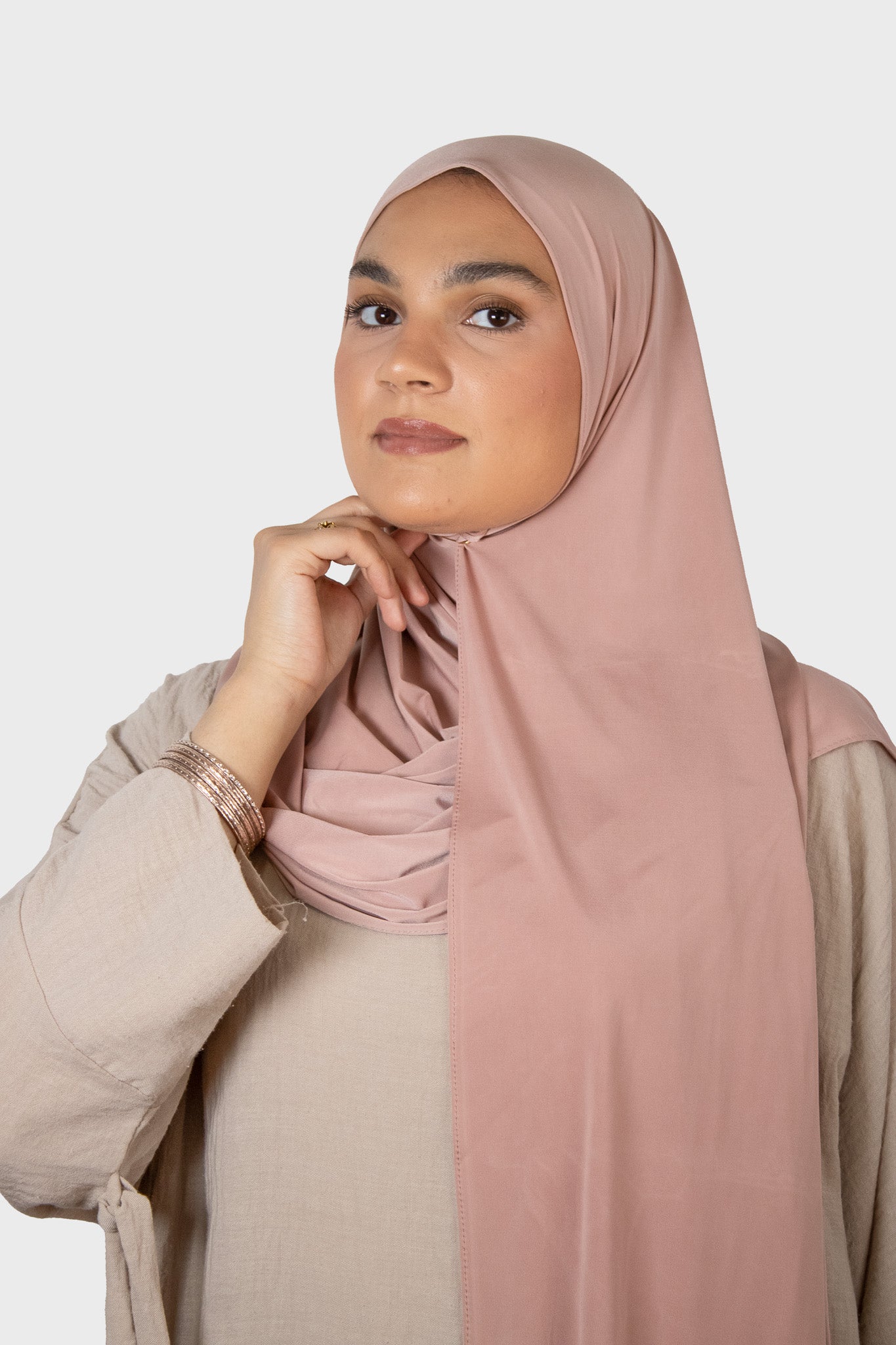 Le voile en jersey liquide se distingue par son tombé fluide et sa texture douce qui offre un confort optimal tout au long de la journée. Léger et respirant, ce tissu est parfait pour un port quotidien, apportant à la fois élégance et praticité. Sa matière permet une excellente tenue sans perdre en souplesse.
