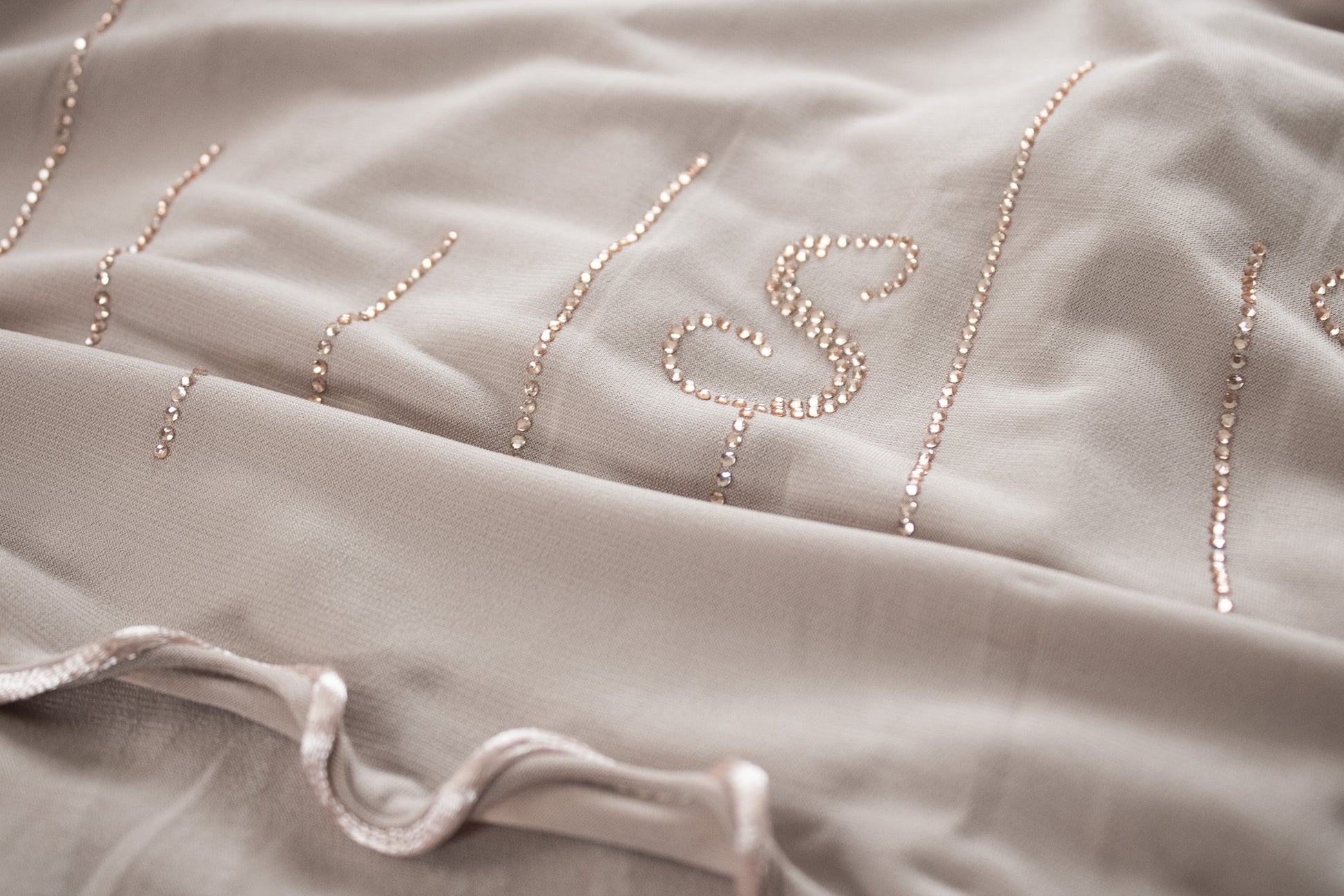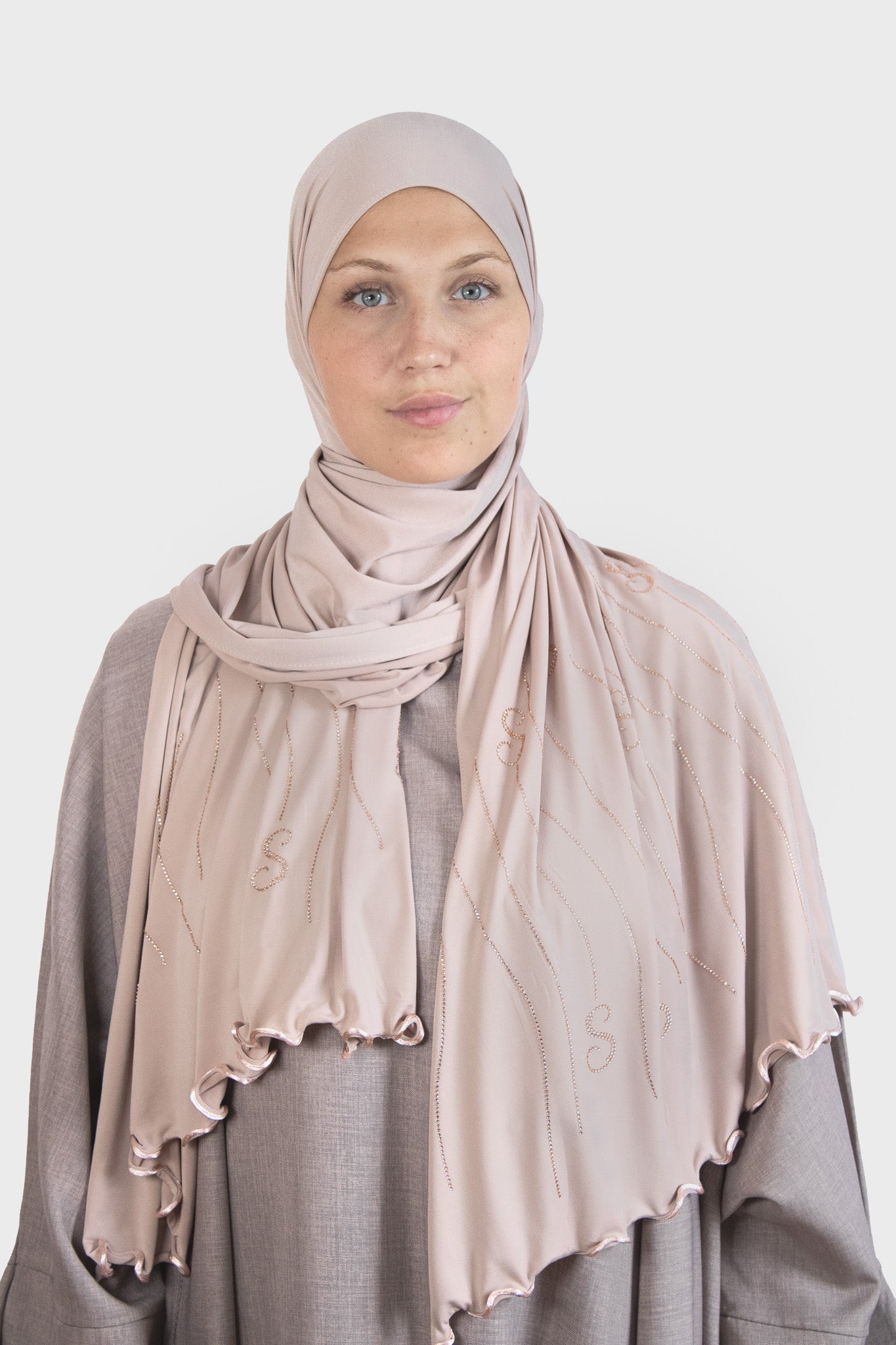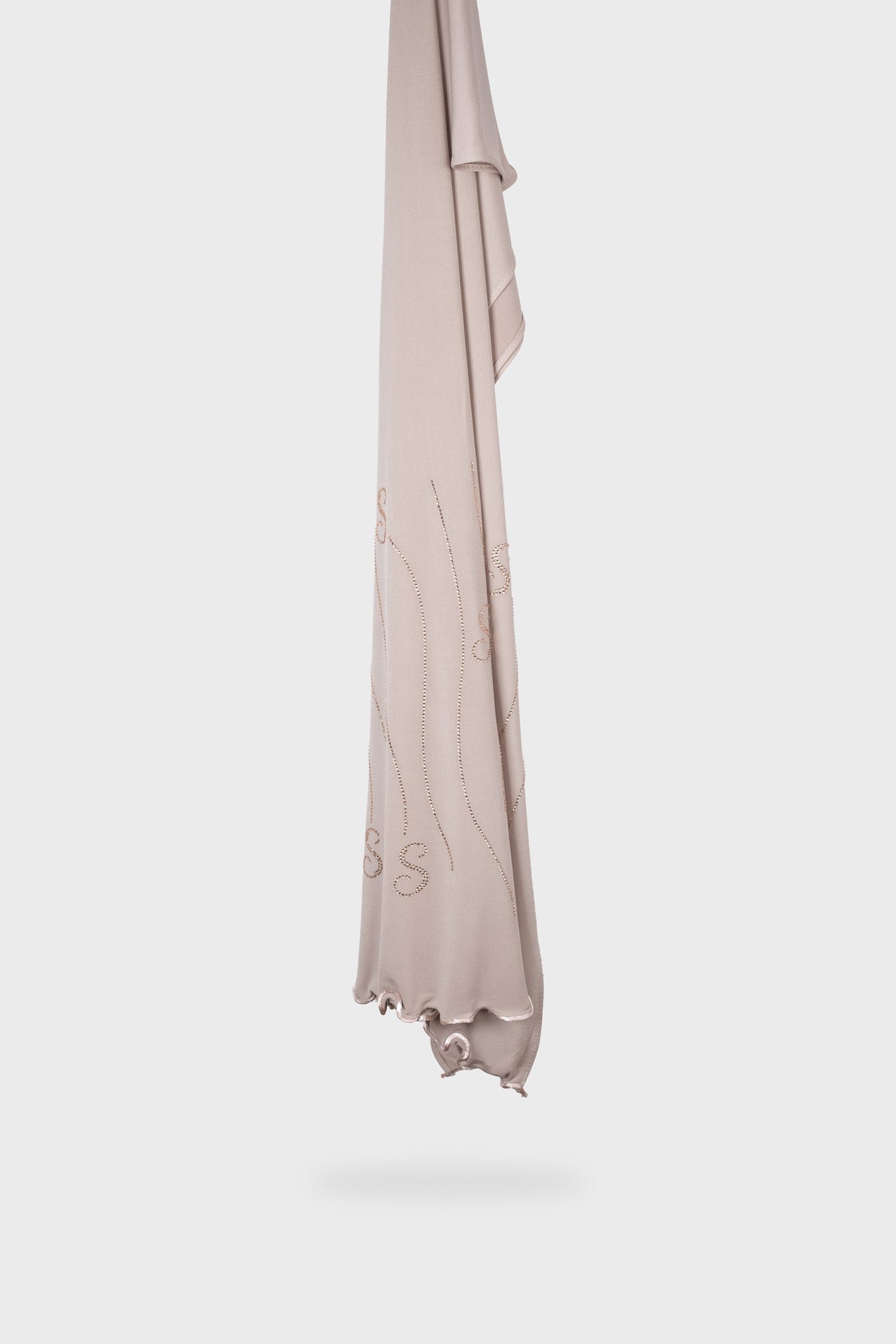 Le voile jersey premium avec strass allie élégance et originalité avec son tissu jersey premium doux et confortable. Son design unique se distingue par un grand « S » placé près de la finition, représentant la signature de Saphir Boutique. Le détail en zigzag apporte une touche d'originalité, tandis que les perles en forme de vagues viennent sublimer le voile. Léger et fluide, il offre un confort optimal tout en rehaussant votre tenue d’un détail chic et contemporain.