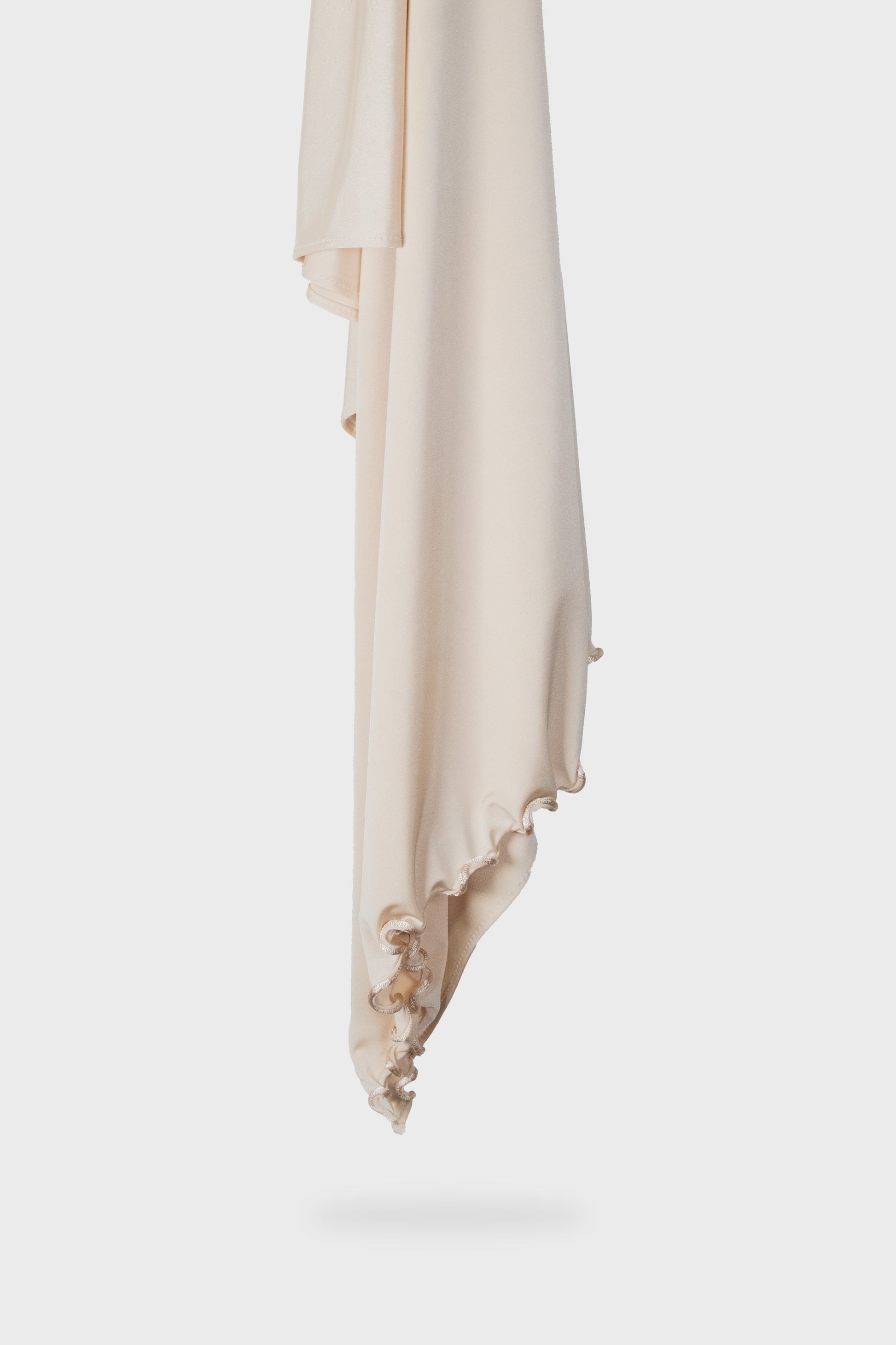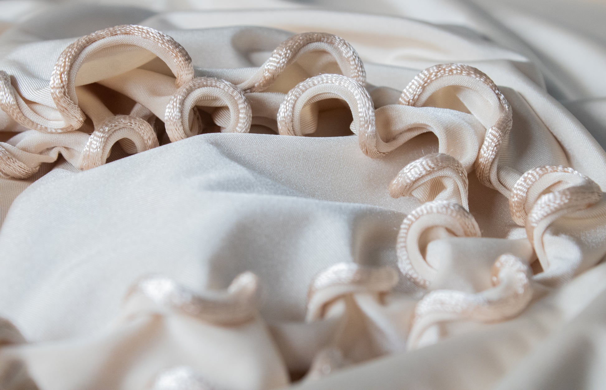 Le jersey satiné zigzag combine l'aspect luxueux du satin avec un design original en zigzag (frisé), offrant à la fois élégance et originalité. Ce tissu allie confort, brillance et un motif distinctif pour un look à la fois sophistiqué et moderne.