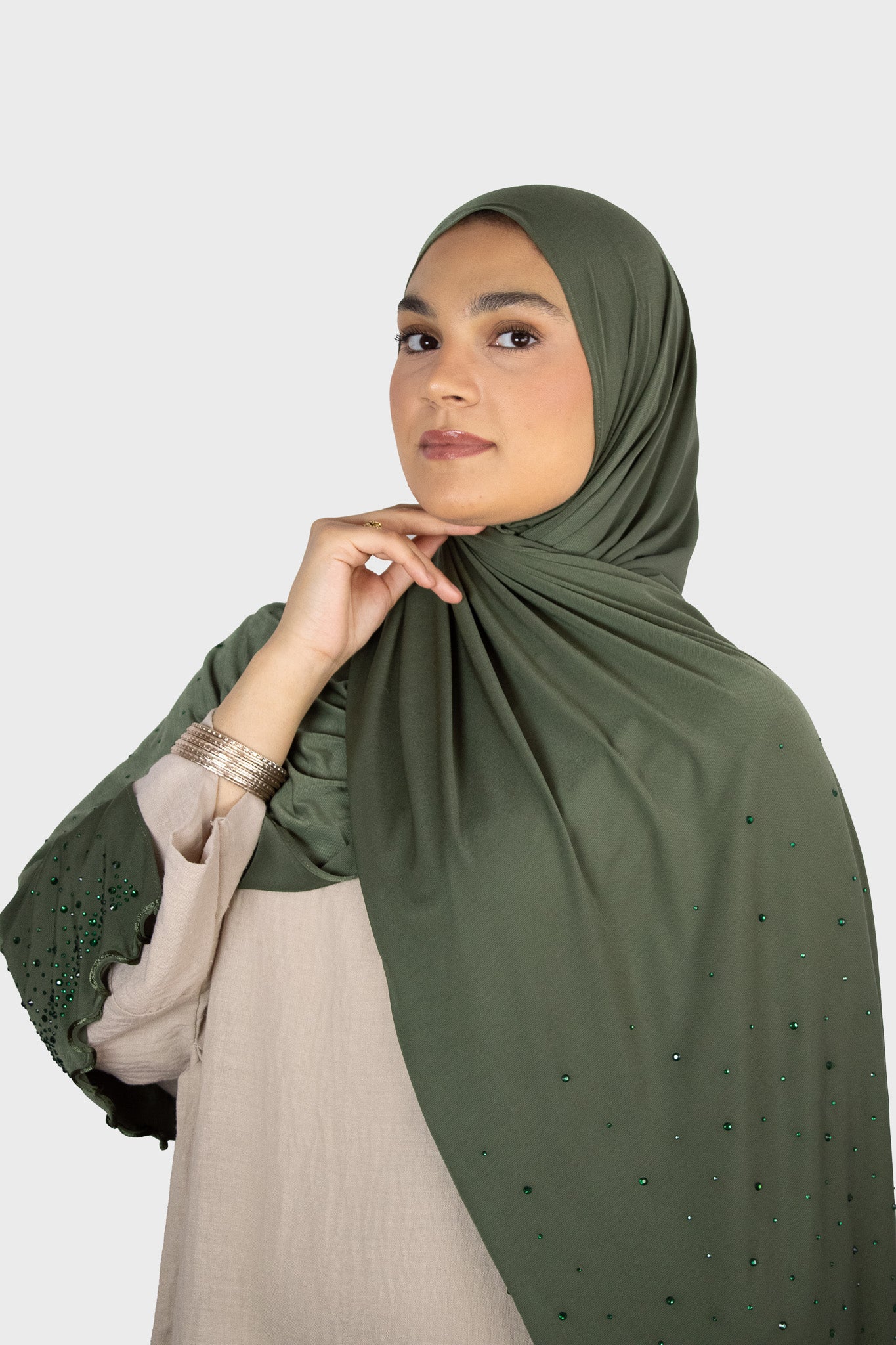 Le voile jersey premium avec perles allie confort et raffinement. Son tissu jersey premium doux et extensible assure une tenue agréable et légère. Le motif zigzag subtil apporte une touche graphique élégante, tandis que les perles délicates disposées en dégradé viennent sublimer le bas du voile avec finesse. Léger et fluide, ce voile est idéal pour celles qui recherchent une élégance quotidienne sans compromis sur le confort.