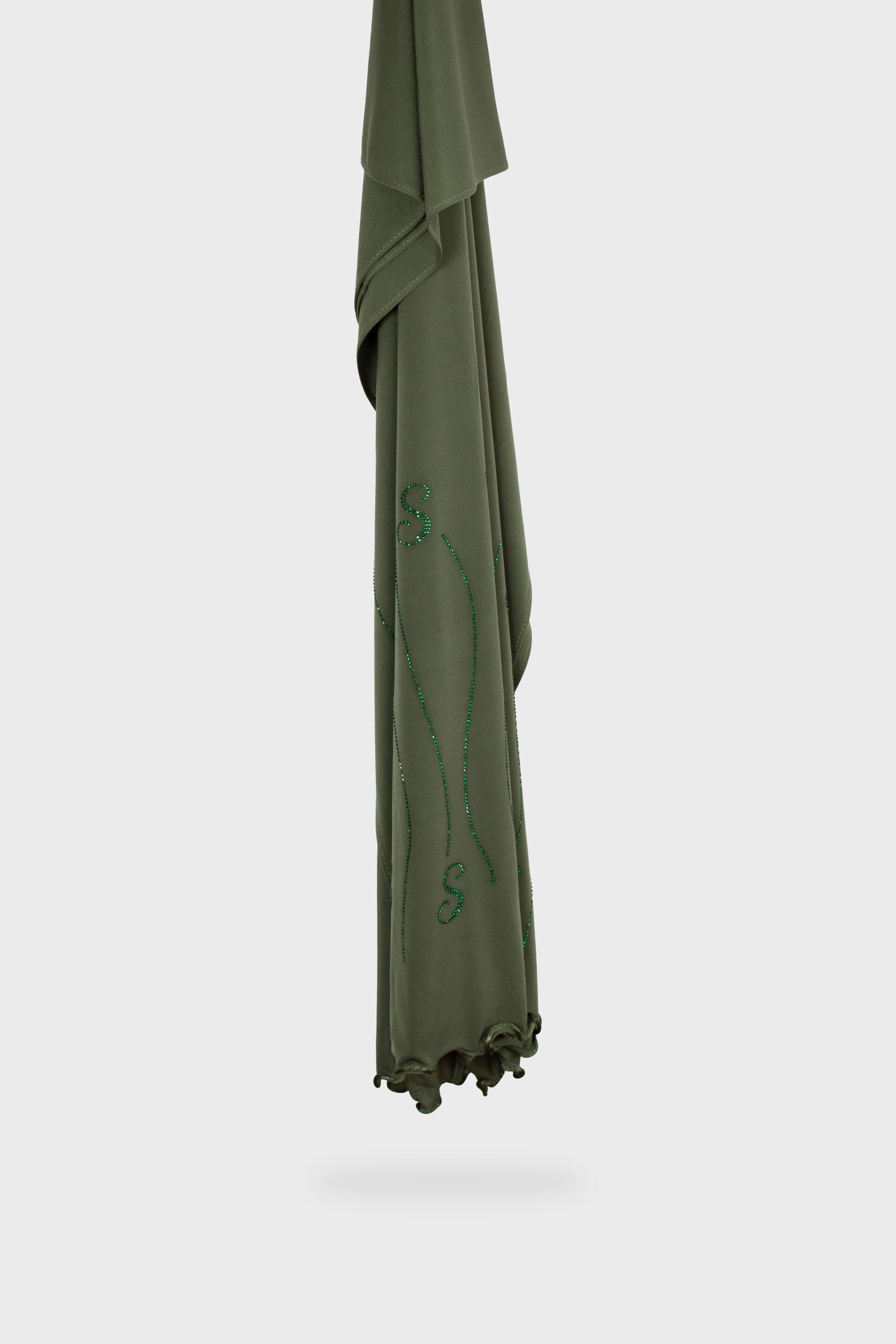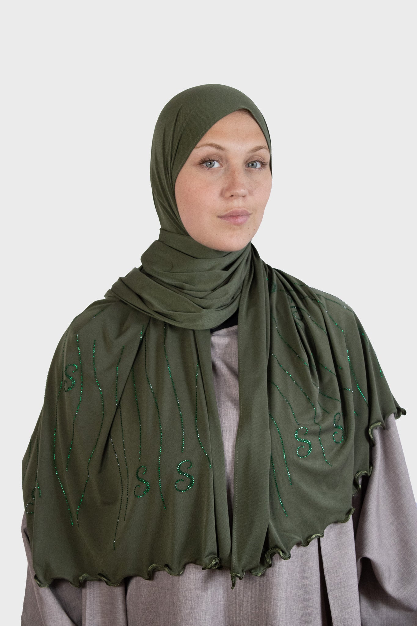 Le voile jersey premium avec strass allie élégance et originalité avec son tissu jersey premium doux et confortable. Son design unique se distingue par un grand « S » placé près de la finition, représentant la signature de Saphir Boutique. Le détail en zigzag apporte une touche d'originalité, tandis que les perles en forme de vagues viennent sublimer le voile. Léger et fluide, il offre un confort optimal tout en rehaussant votre tenue d’un détail chic et contemporain.