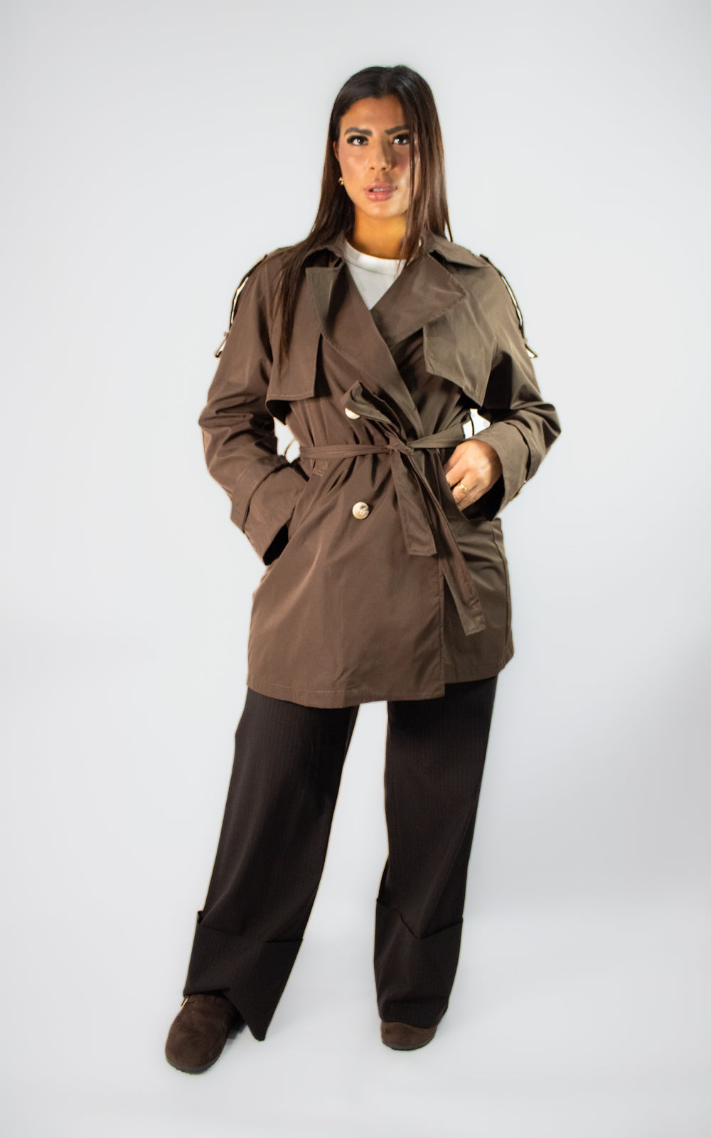 Cette veste trench à ceinture est une pièce intemporelle qui allie élégance et praticité. Confectionnée en 100% polyester, elle offre une coupe fluide et structurée, parfaite pour la mi-saison. La mannequin porte une taille unique. Sur les photos, nos mannequins mesurent entre 1m60 et 1m65.
